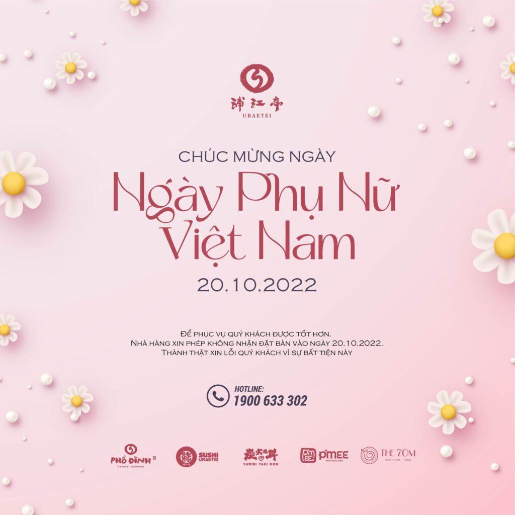 Nhân một ngày 20.10 đẹp trời với chút gió thu mềm mại, nhà Sushi Uraetei chúc cho phái nữ đón ngày Phụ Nữ Việt Nam thật vui vẻ và đáng nhớ.